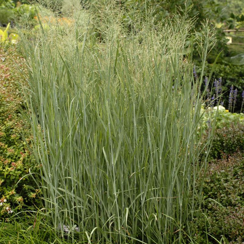 The thin, upright, metallic-blue foliage of this variety will form a clump as it sends up airy seed heads of copper-bronze in September.
