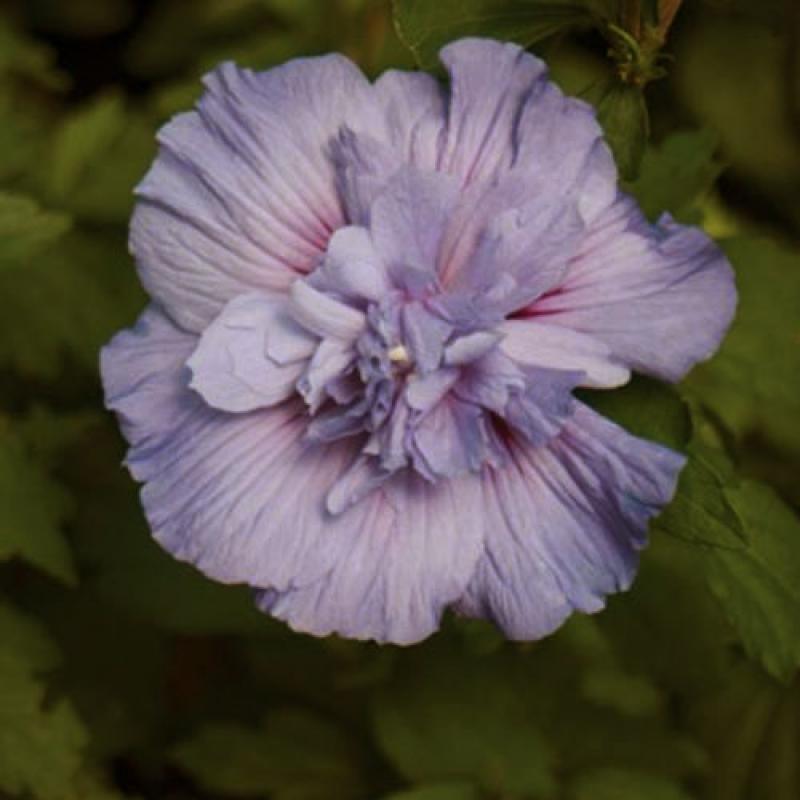 'Blue Chiffon' produces exquisite blue-lavender flowers that have a lacy center and give the bloom a semi-double appearance. This variety will bloom profusely from late July through September and make a dramatic specimen plant.