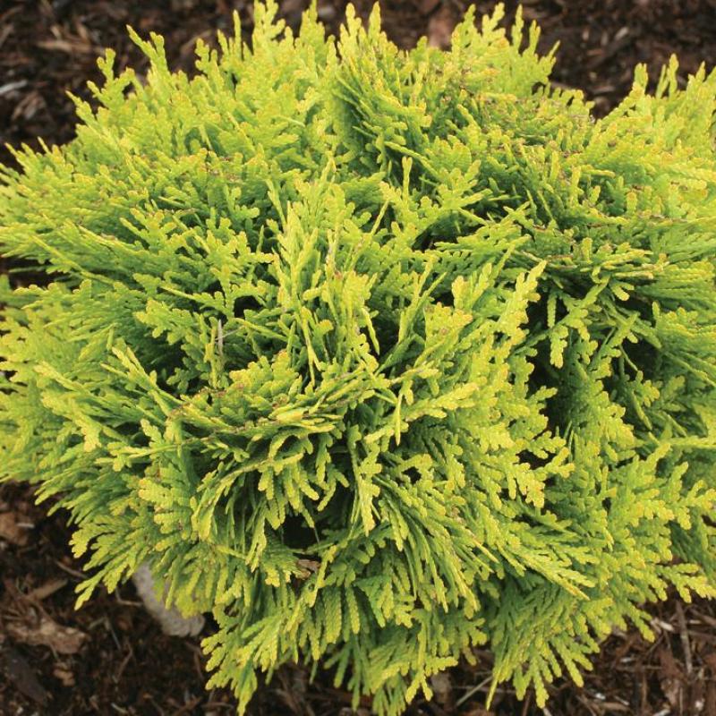 Dwarf evergreens look great year round, and fill a void in many landscapes. This bright golden evergreen ball features looser foliage than other dwarf gold colored selections and a more block-like habit. Found at Van Vloten Nursery in Canada, it has good burn-resistance and holds its color nicely in winter and is very hardy. It thrives in partial to full sun and holds its winter color well.