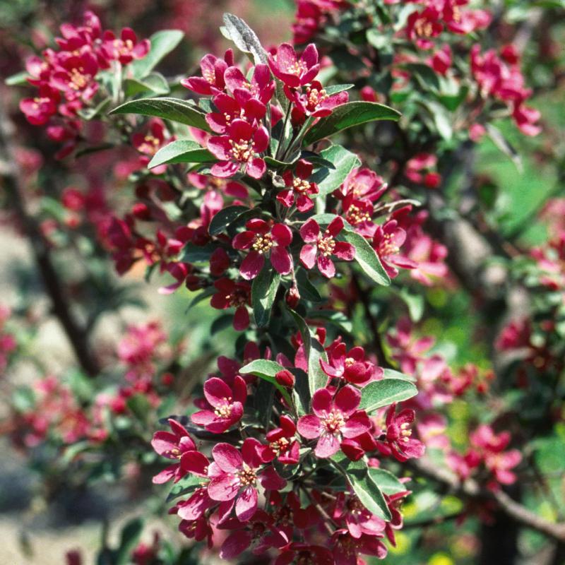 'Purple Prince' boasts incredible purple-red foliage that forms a vigorous, round, upright form. A mass of bright rosy-magenta flowers appears in April to May. In fall, the plant is covered in deep purple-red, persistent fruit that is loved by birds.