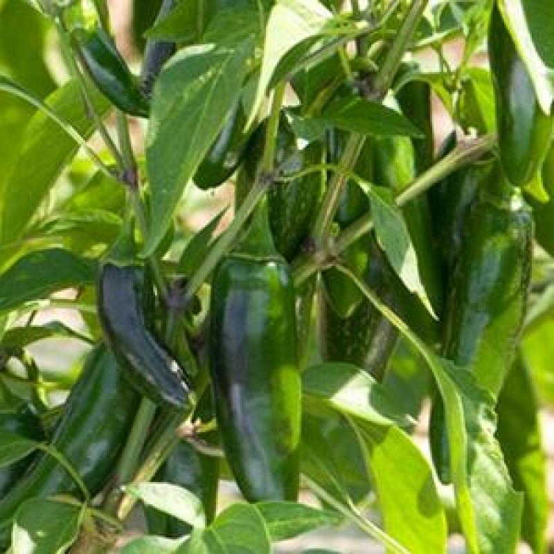 Large and vigorous plants produce high yields of 3 1/2 to 4" green jalapeno peppers that resist cracking. Ripens later than El Conchos. Rated hotness is between 2,500-8,000 on the scoville pepper heat scale.