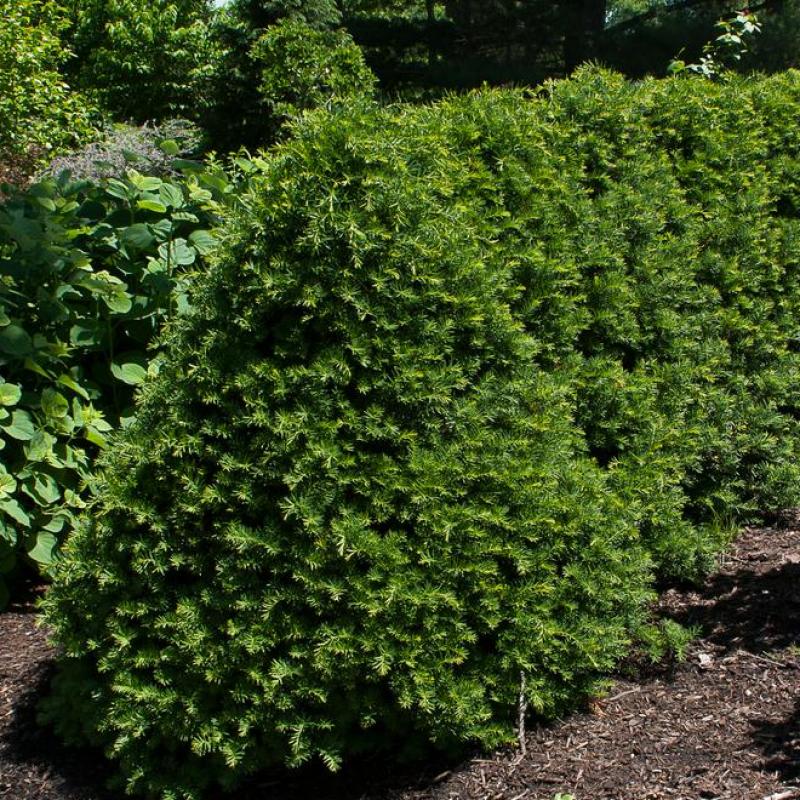 A uniform, fast growing clone of 'Capitata' with lustrous, dark green foliage and improved winter color. An excellent hedge or topiary evergreen with emerald green new growth in spring that contrasts well against the dark green needles.