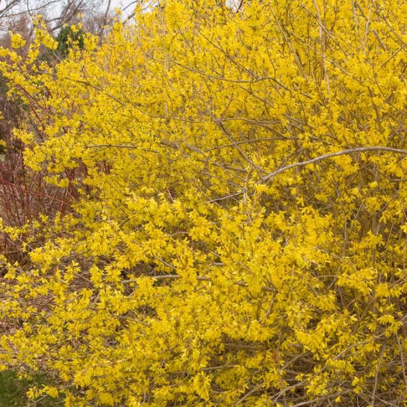 Blooms before leaves appear in spring. Masses of bright yellow flowers are followed in fall with a magnificent display of fall foliage color. Good for shrub and border use. Tough and fast growing. Ideal planted in groups to form hedges and borders. Spectacular in bloom during April.