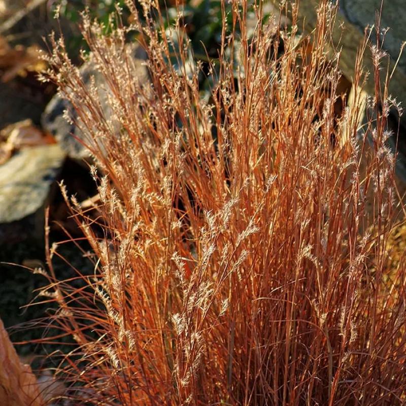 A colorful native grass with fine, upright green foliage that takes on brilliant shades of red, orange, and purple in fall. Airy seed heads add movement and persist into winter, providing food for birds and seasonal interest. 'Blaze' is highly adaptable, thriving in dry soils and full sun, making it excellent for naturalistic plantings and low-maintenance landscapes.