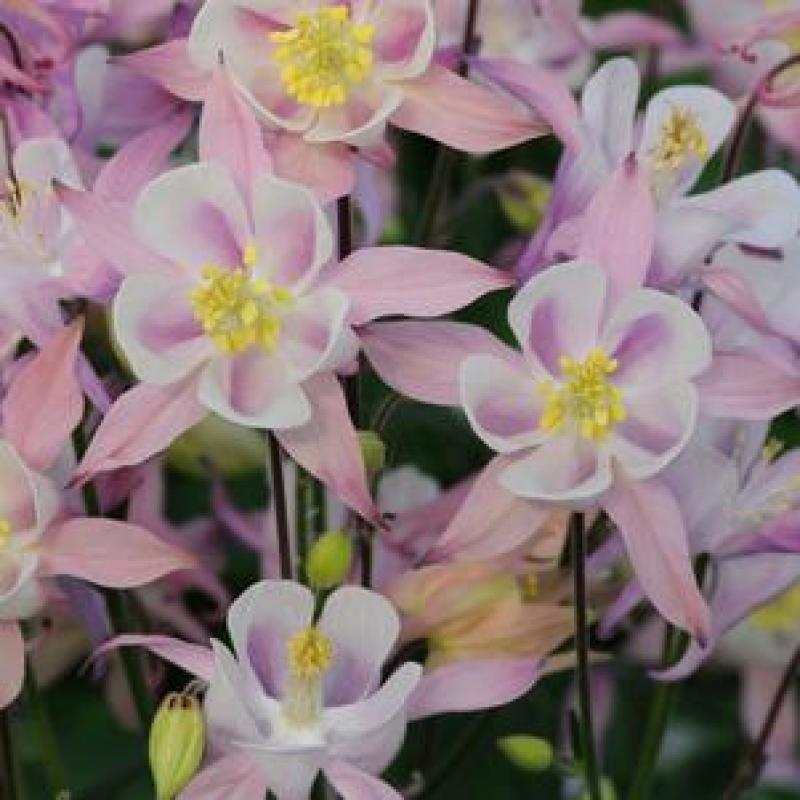 This variety's upward-facing, short-spurred, bicolored flowers of light pink and white will emerge in late May to June on a compact plant with charmingly lobed green-gray foliage.
