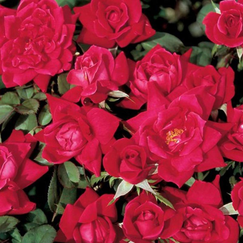 Abundant clusters of small, double to semi-double, bright red flowers cover this plant from spring until the first hard frost. 'Double Knock Out' will grow into a compact and densely formed shrub.