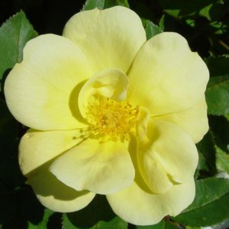 'Sunny Knock Out' features fragrant, single, lemon yellow flowers with yellow anthers that fade to pastel cream and are produced all season on compact plants with deep green disease resistant foliage.