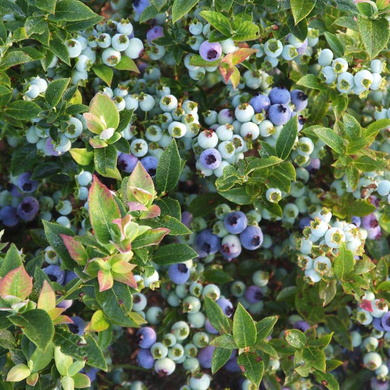 An excellent dwarf variety suited to a low hedge or containers, 'Jelly Bean' produces delicious sweet berries in mid July and provides an excellent red fall color later on.