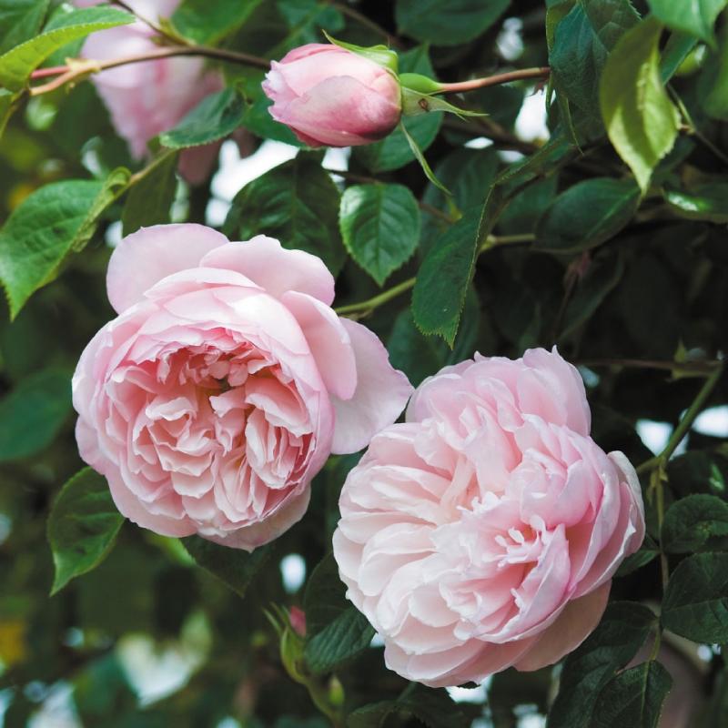A rose of delicate charm, the very fragrant flowers of 'Generous Gardener' are beautifully formed and their color is a soft glowing pink at the center, shading to the palest of pink on the outer petals. It can also be used as a mid-sized climber.