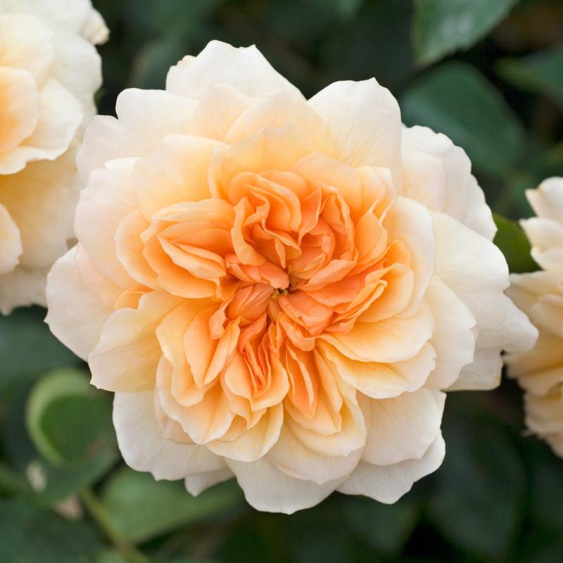 ‘Port Sunlight’ is an exquisite English shrub rose by David Austin, bearing large, deeply cupped blooms of rich apricot that fade to soft creamy peach at the edges. Its strong tea fragrance and continuous flowering habit make it a standout in mixed borders and cottage gardens.