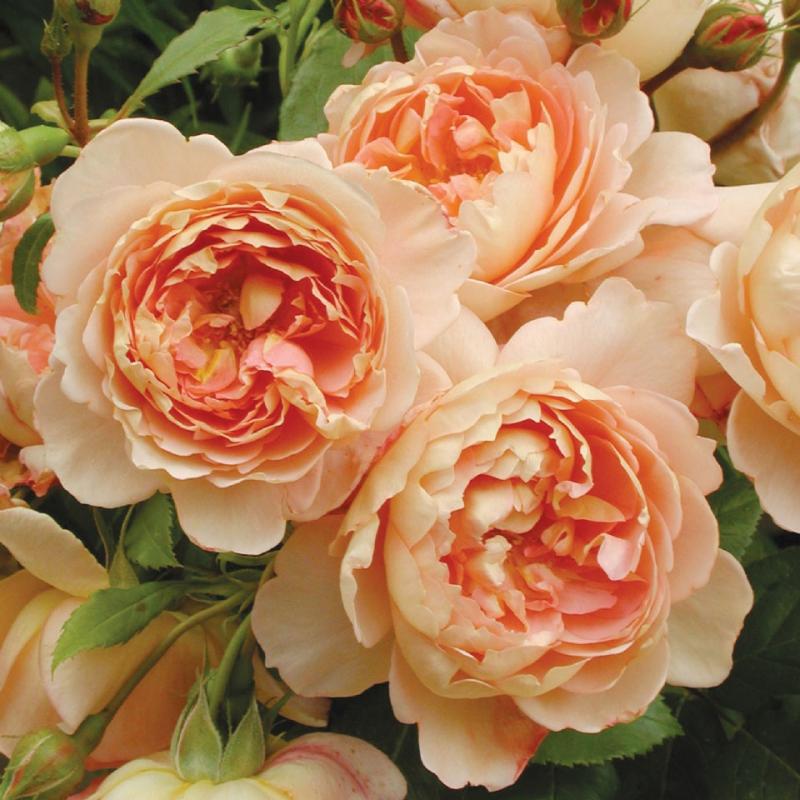 This repeat bloomer offers fragrant flowers of beautifully mixed shades of pink, apricot and yellow, giving the impression of rich apricot. Don't miss the inside of the petals that are a very rich, deep apricot when the buds are just starting to unfurl!