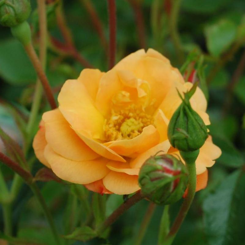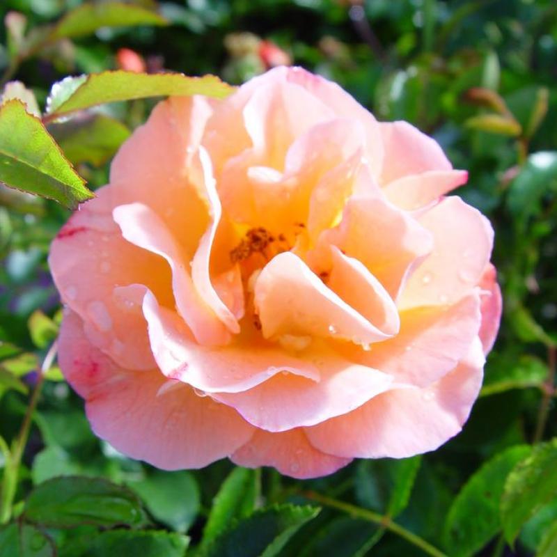 Get ready to be dazzled by 'Amber', the third member of the new generation of Flower Carpet Roses that is characterized by superb vigor, disease resistance, foliage and flower power. 'Amber' will not disappoint in any of these categories as it produces the shiniest of red emerging, deep green matured foliage on arching stems that form a tight, spreading, mounding carpet of green that fills itself with buds by mid to late May. The season long flower show that follows is breathtaking with golden amber double blossoms emerging then maturing to a soft apricot-pink with age. The parade of bloom doesn't end until October on this plant that is tough, easy to grow and easy to love. Plant a group of 'Amber' in full sun and watch them fill an area of your landscape with such ease you'll wonder if it really is a rose or just the best long blooming flowering shrub you've ever found!!