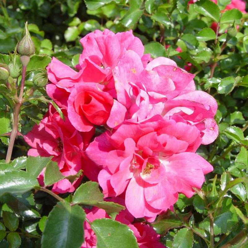 The old standby that still keeps on performing. Vigorous and spreading, this plant is awash with double, deep pink flowers throughout the growing season and is nearly care free with glossy, disease-resistant foliage.