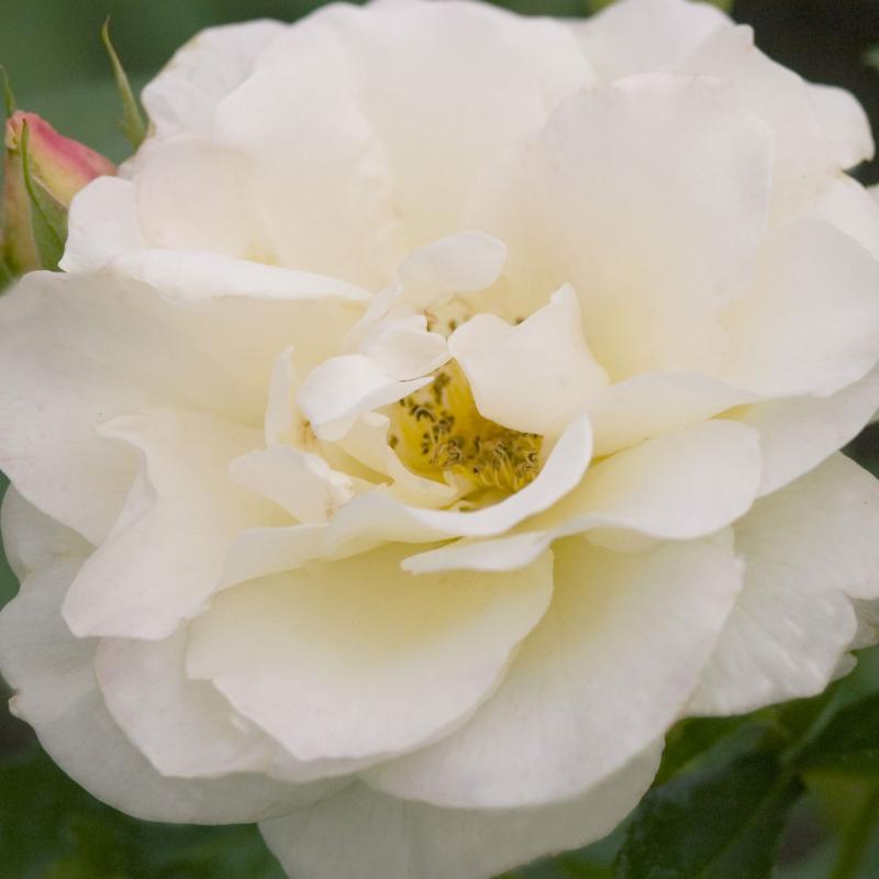 The big, lemon yellow buds of this variety open to fully double, creamy white flowers that nearly obscure the glossy, deep green, disease resistant foliage. 'Macy's Pride' blooms all summer on a dense, rounded form.