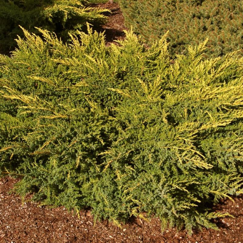 Glowing light golden new growth contrasts with the bluish-green interior foliage creating an eye-catching soft appearance.