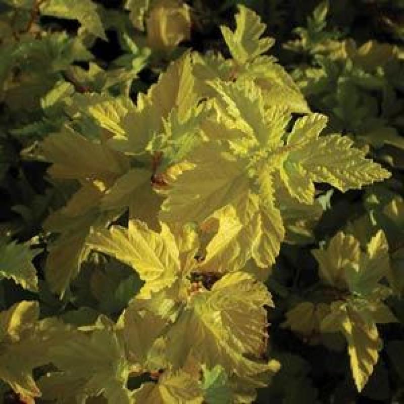 The bright chartreuse foliage of this selection contrasts nicely with the deep red stems of this stunning, compact shrub. A dusting of white flower clusters arrive in May. Compact and easy to grow, this plant will require little pruning or care.