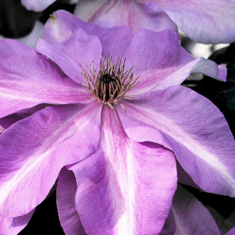 This variety's deep lilac blue flowers with pink-lavender central bars reach 7" wide. As the flowers age, the colors change to add interest among the newly emerging flowers. It will bloom heavily in June and repeat until October. (Pruning Group 3)