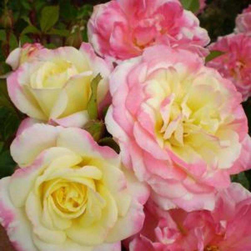 A cheerful, repeat-blooming rose with softly blended petals of creamy yellow edged in rosy pink. ‘Music Box’ produces abundant, full blooms all season on a compact, well-branched plant with good garden performance.