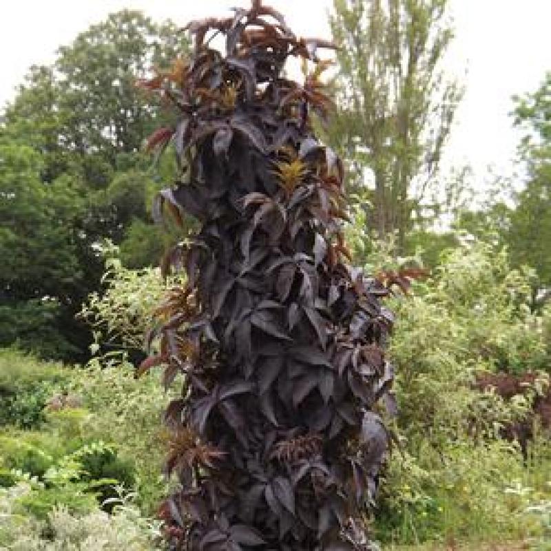The shiny, deep burgundy leaves of this variety will add drama to the umbels of pink flowers in June. A decidedly upright habit will fit into most landscapes beautifully. Red berries in fall are a delight for humans and birds alike.