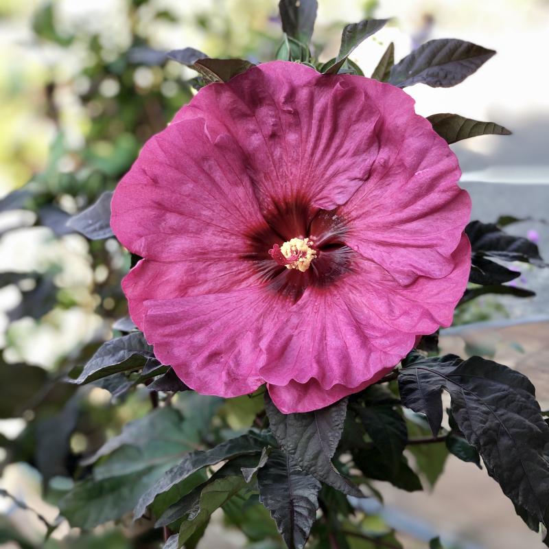 This variety's large 7-8" lavender-pink flowers have deep red centers and are showcased from late summer to early fall over deep bronze-green glossy foliage.