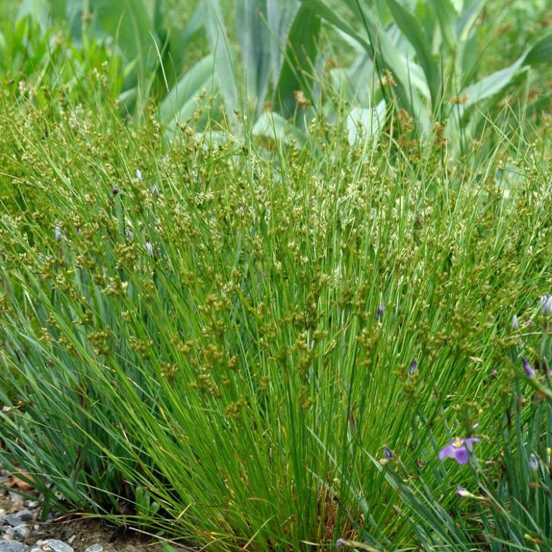 A tough, fine-textured native rush that naturally grows in compacted soils, paths, and disturbed areas. Its upright, wiry green stems create a soft clump that blends well in naturalized plantings and rain gardens. Highly adaptable and resilient, this species provides ecological value in wetland and meadow restorations.