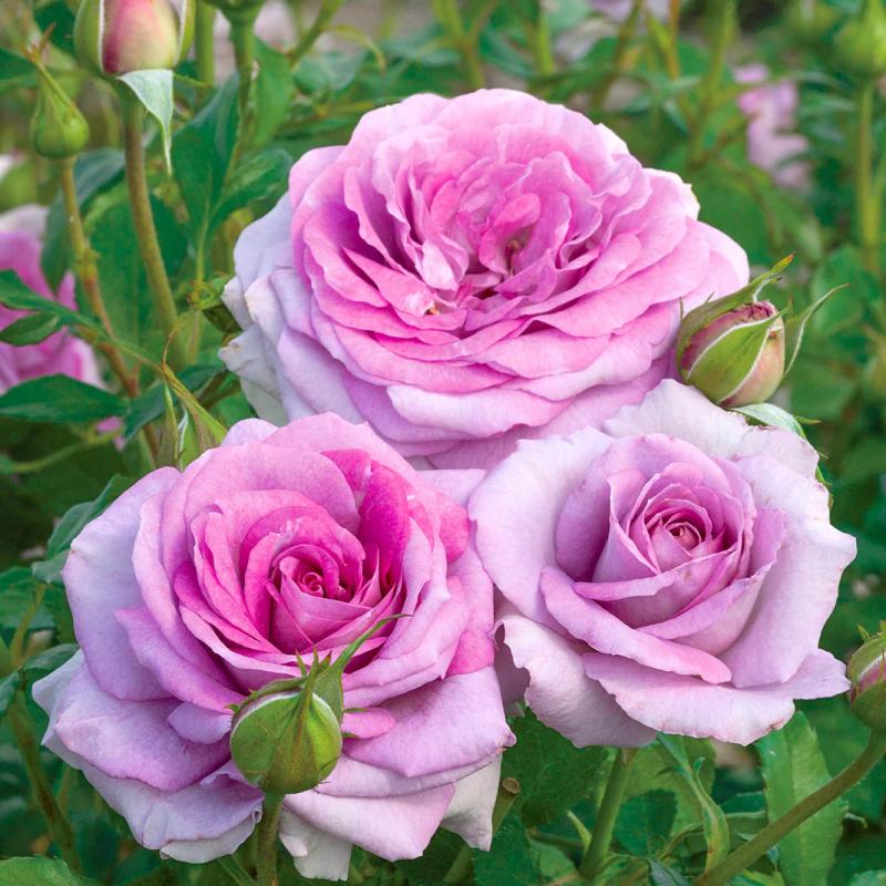 A stunning floribunda rose named for the iconic Lady Violet of Downton Abbey. Its lavender-mauve blooms are accented with magenta centers and a strong grapefruit and spice fragrance. ‘Violet’s Pride’ blooms continuously on a compact, disease-resistant plant perfect for borders or containers.