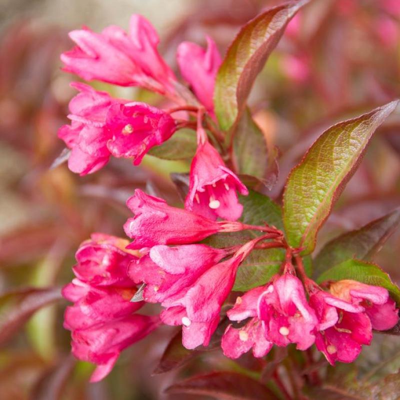 If you blink, you may miss one of the many flashy colors of Strobe Weigela. From spring through autumn, you’ll see bright pink flowers against green and bronze - then orange - then crimson red foliage. One of the features we know you’ll love about Strobe is its naturally tidy, mounded form, making it very easy to care for.