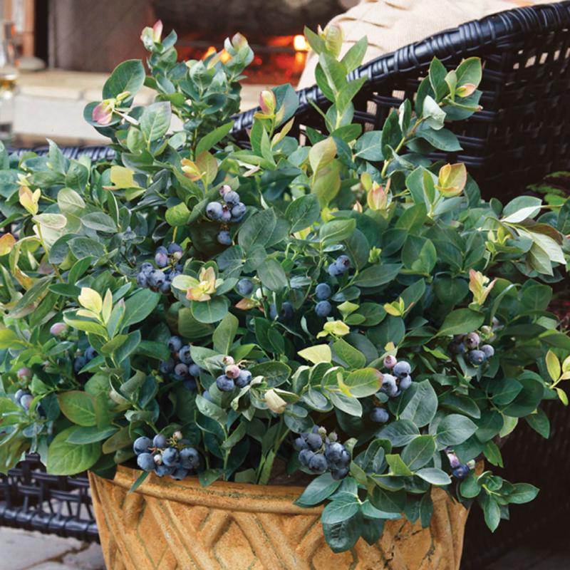 This blueberry is full of color year-round. The leaves range from peach to pink to orange to emerald green and will persist through the winter while transitioning to a rich eggplant purple. Sweet blueberries are produced in abundance during mid-summer.