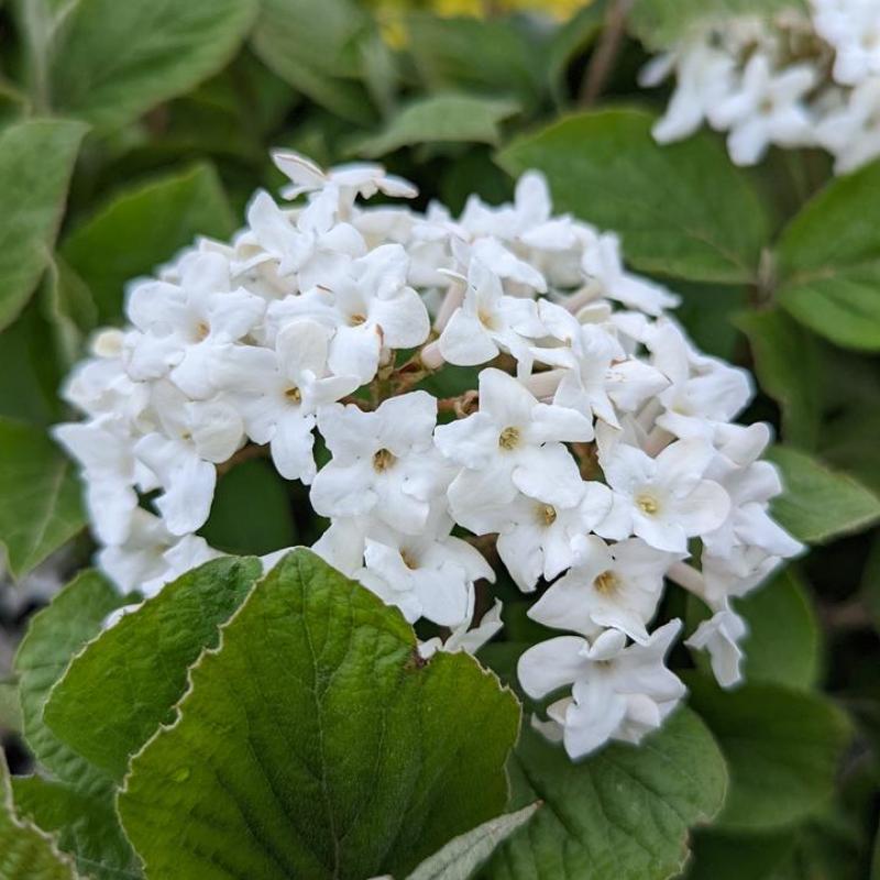 This viburnum never stops giving! It begins with clusters of highly fragrant white flowers followed by leaves in brilliant shades of burgundy and red in fall that make the entire plant look like its on fire.
