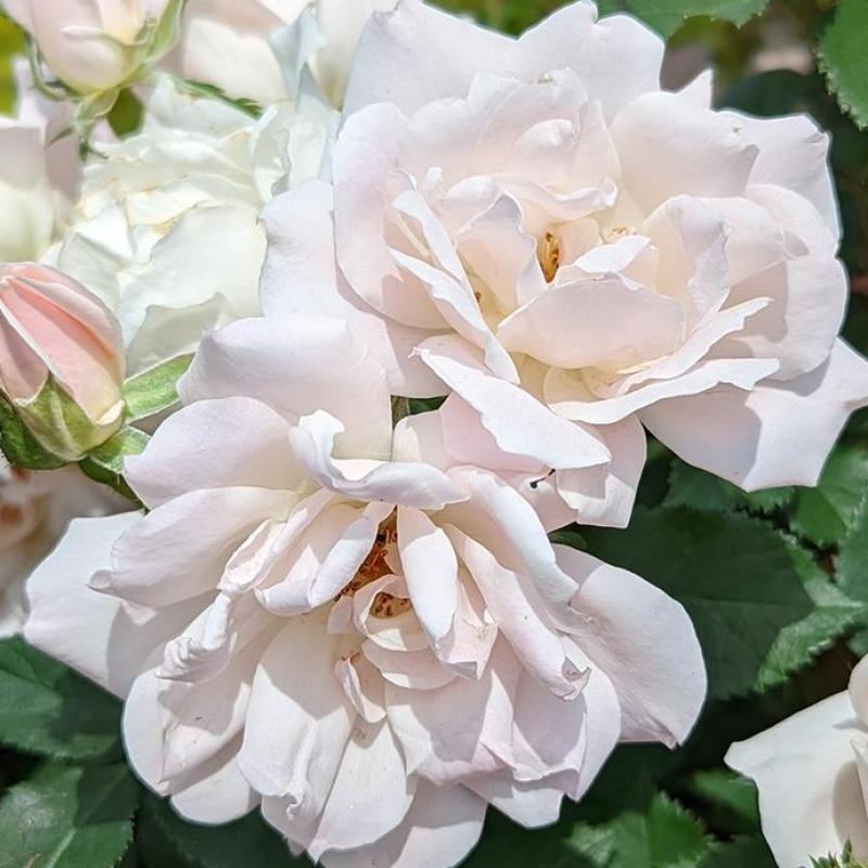 A clean, soft-white groundcover rose with semi-double blooms and a light, fresh look. Exceptionally disease resistant and free flowering from late spring through frost, making it a dependable low-maintenance landscape rose.