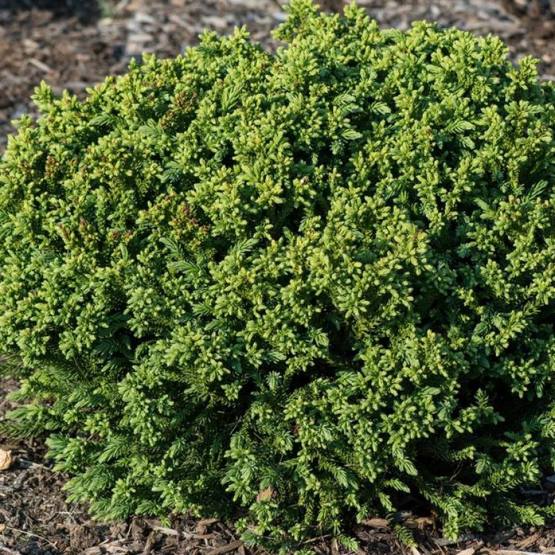 A compact, globe-shaped evergreen conifer with dense, bright green foliage that turns bronze in winter. Excellent for small spaces, rock gardens, or foundation plantings. Low-maintenance and eye-catching year-round.