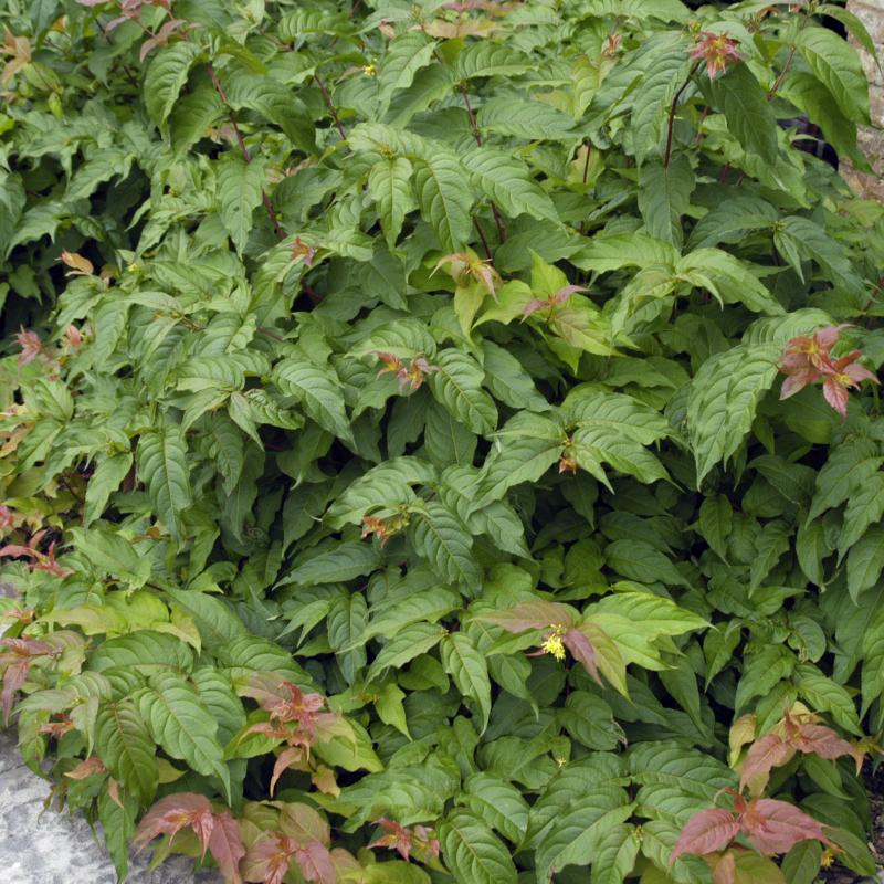 An understated yet pleasing native with olive-green glossy foliage, this variety offers yellow tubular flowers that bloom along the stem with the leaves from June to July. A favorite of native nectar feeders, it also boasts a burgundy fall color.