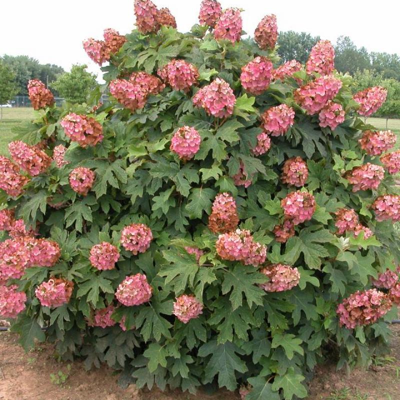 ‘Queen of Hearts’ lives up to its name with majestic, large panicles of white flowers that age to deep pink and rose tones. Its bold, oak-shaped foliage provides stunning texture throughout the season and turns brilliant mahogany-red in fall. A standout for structure and long-lasting color.
