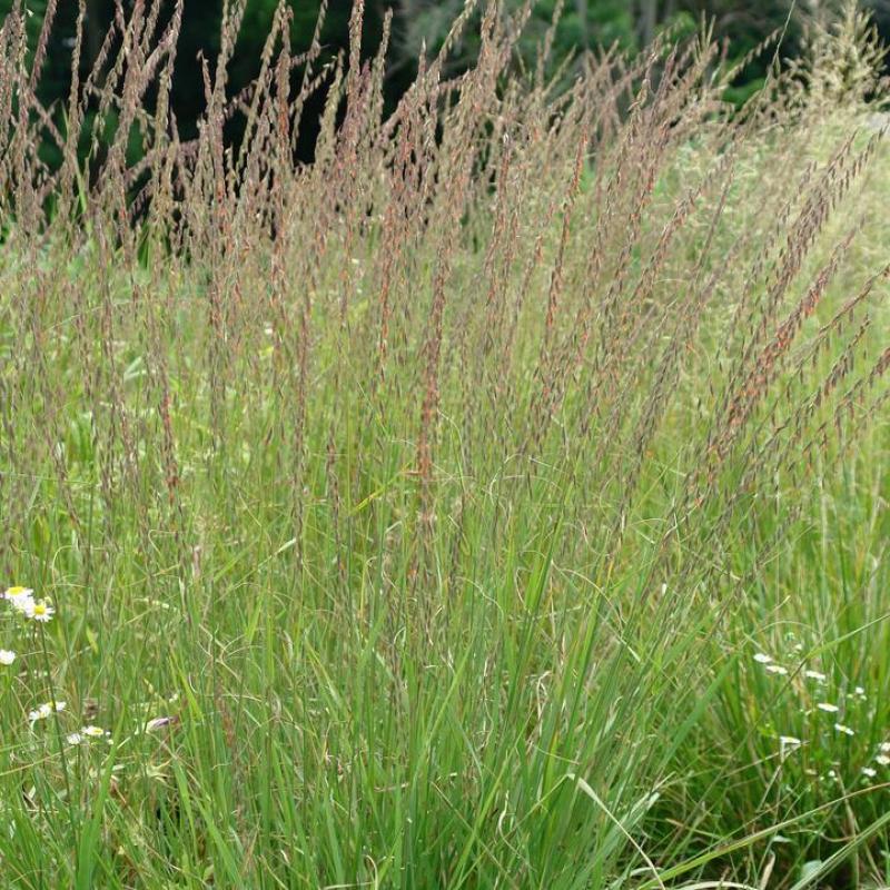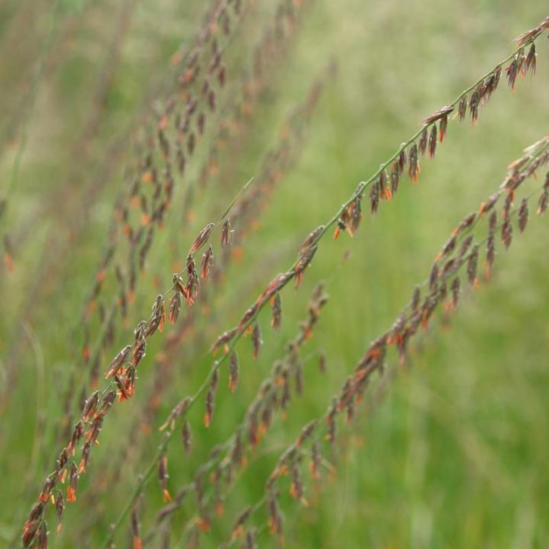 A tough native grass with graceful arching stems lined with distinctive oat-like flowers that dangle to one side. Turns golden-orange in fall. Excellent for meadows, erosion control, and wildlife gardens.