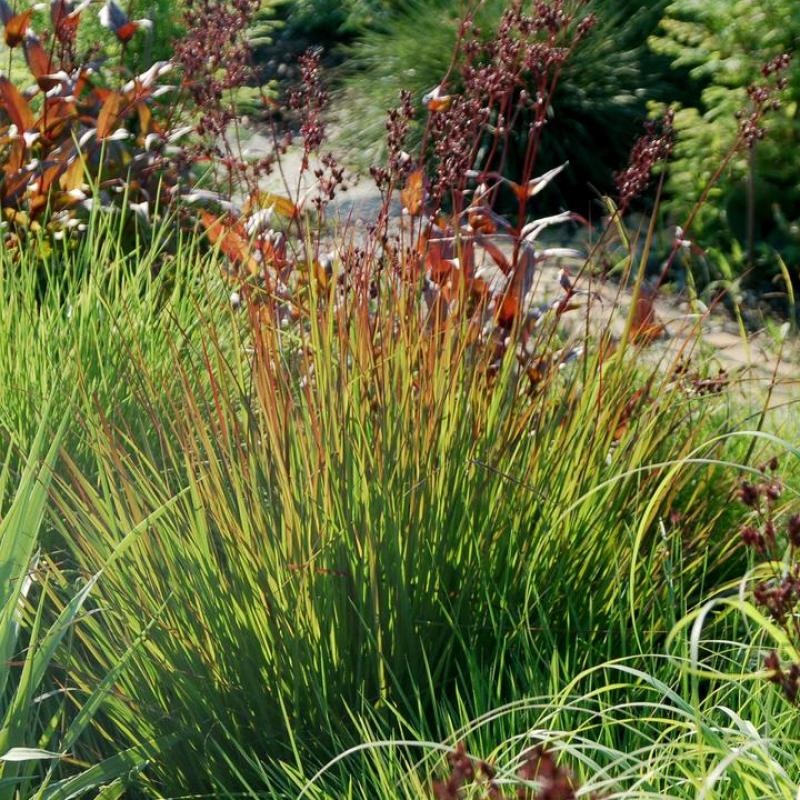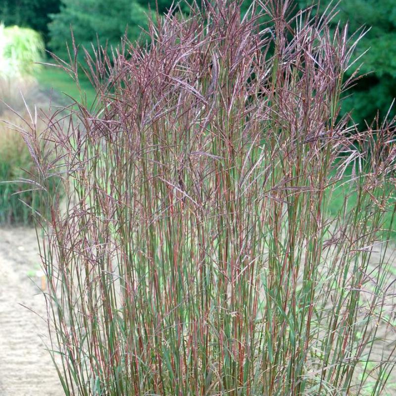 A striking Big Bluestem selection with deep red-purple blades intensifying through summer and peaking in fall. Its upright habit and bold color provide architectural structure and drama in native plantings and modern landscapes.