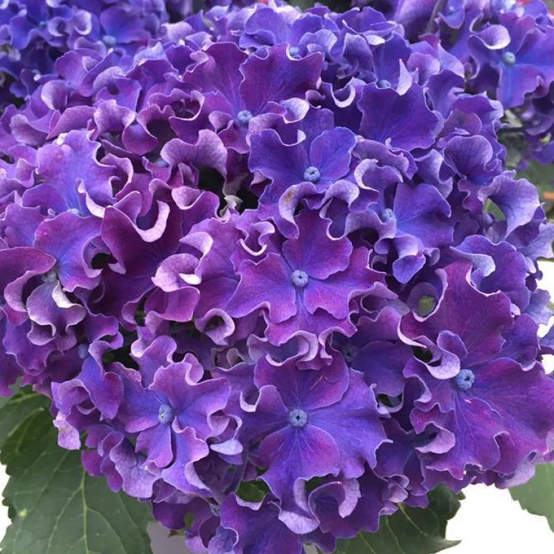 A truly unique hydrangea with deeply ruffled, wavy-edged petals that shimmer in shades of vivid violet-blue. ‘Curly Sparkle Blue’ offers a compact habit and long-lasting blooms that provide texture and brilliance in borders, containers, or foundation plantings.