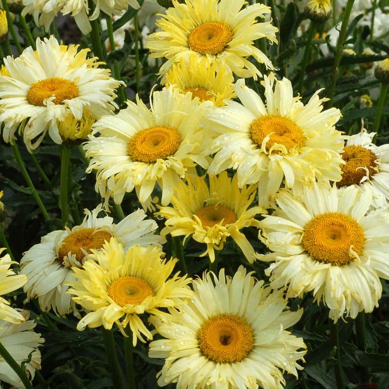The yellowest of any Shasta Daisy bloom, this selection thrills with big, bright, lemon yellow flowers from July through August. Sporting a double row of rays, the flowers fade to ivory as they age. A terrific cut flower!