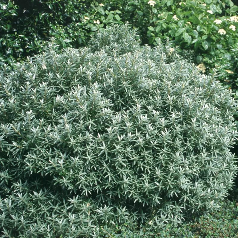 A compact, dense sea buckthorn with striking silver foliage that adds year-round texture and brightness to the landscape. ‘Sprite’ produces abundant orange berries in late summer when paired with a male pollinator. Tough and drought-tolerant, it thrives in poor soils and coastal conditions.