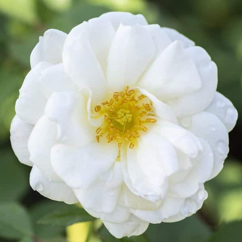 ‘Whipped Cream’ produces abundant clusters of creamy white blooms with golden centers that resemble dollops of frosting. Compact and tidy, this floribunda rose blooms repeatedly from spring through frost with excellent resistance to disease. Perfect for brightening garden borders, containers, or mixed plantings.