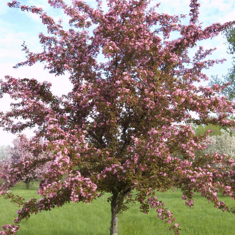 The lovely soft lavender-pink fragrant flowers of 'Red Splendor' arrive in April and are followed by red-tipped green foliage that holds its color all season. Copious amounts of bright red persistent fruit will welcome fall.