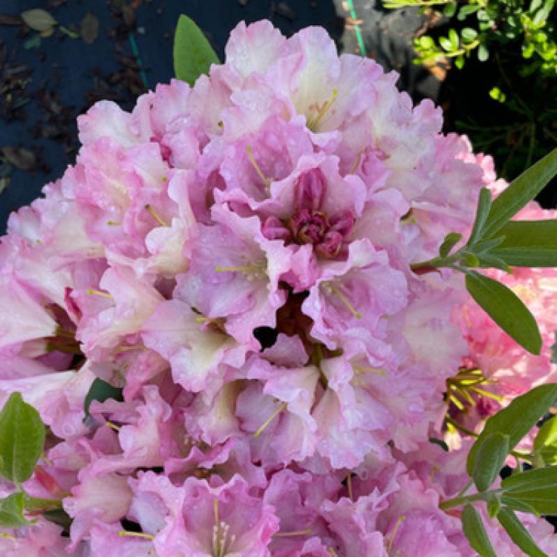 Bred at the University of CT to commemorate its basketball prowess, this extremely cold hardy selection features huge trusses of salmon-pink bloom with prominent orange-yellow throats. Profuse blooming, it forms a full, compact plant in the landscape. Huge amounts of spring bloom. Outstanding color combination with salmon pink flowers color along with orange-yellow flower throats. Dense, round, full form that is perfect for larger foundation planting or grouped to form a semi-shade border planting.
