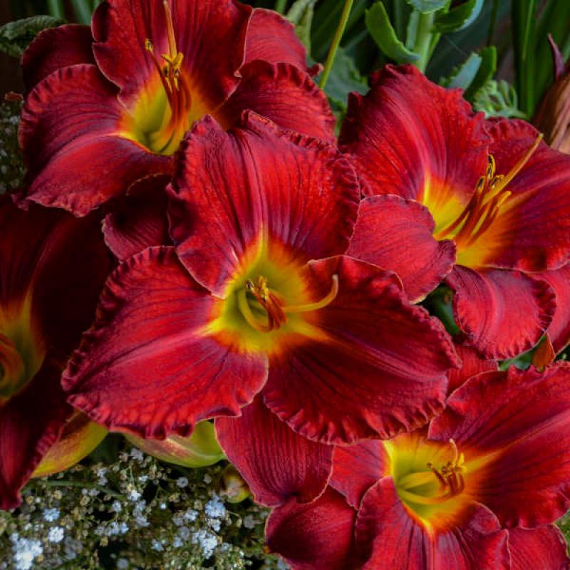 Rich deep red 5" flowers with yellow eyezones and an excellent fragrance are hallmarks of 'Prairie Wildfire'. This variety will exhibit a high bud count and bloom for weeks in mid July.