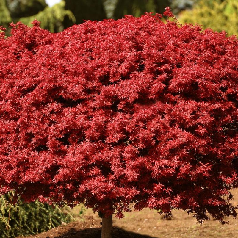 'Shaina' features very fine clusters of burgundy-red leaves that are a third the size of most Japanese maples. A clustered branching habit creates a slow-growing, tight shrub or miniature tree.