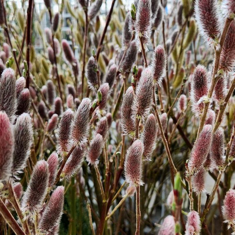 A true harbinger of spring , this selection produces big, soft fuzzy pink catkins in March and April that are perfect for cutting and drying! Easy to grow and fast growing. Unique looking spring catkins welcome spring to the garden. Easy to grow and aggressive. Branches with catkins are perfect for cutting or drying. Nice as a large specimen for a sizable area.