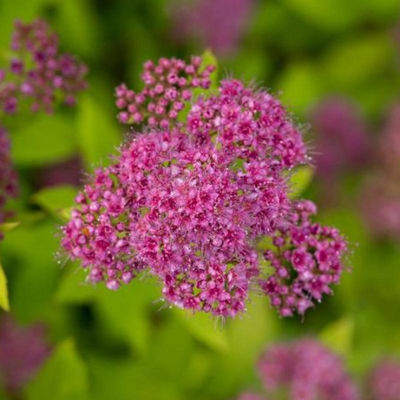 A compact, mounding shrub with vibrant golden foliage that holds its color all season. Bright pink flower clusters appear in early summer and attract pollinators. 'Little Spark' is perfect for borders, edging, or mass planting.
