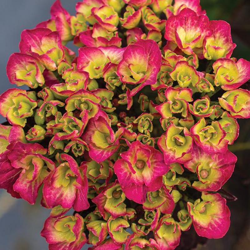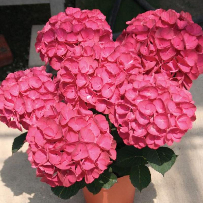 The color of these deep pink globes contrasts the deep green foliage of this medium sized shrub. Leaves turn to a dark burgundy color with the fall weather. Incorporate in a floral arrangement for mounds of definition and dimension. Great planted along the side of a house where there is partial shade, or in containers on a porch.