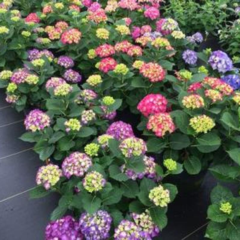 A compact rebloomer with large, mophead blooms in rich red or deep pink depending on pH. Glossy dark green foliage and excellent disease resistance make it ideal for borders and containers.