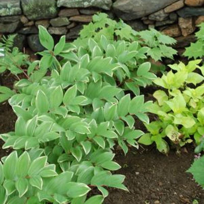 Our native Solomon's Seal, this plant features emerald-green leaves arranged alternately along tough, yet dainty looking arching stems. Pendant green-yellow flowers appear in late April to May and dangle below the foliage.