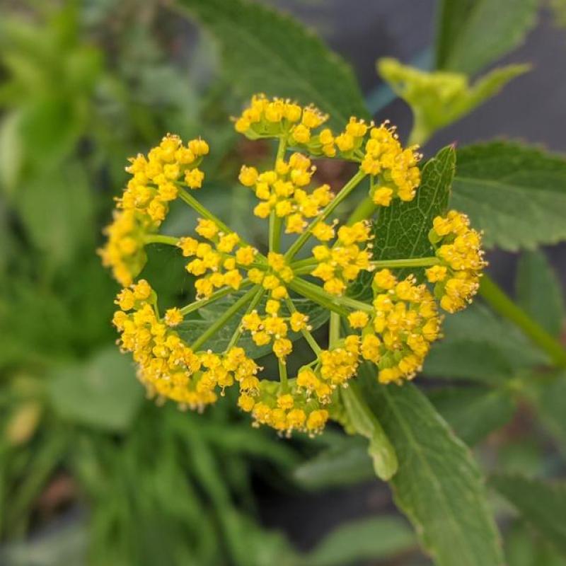 Heart-Leaved Meadow Parsnip (Zizia aptera) is a perennial plant celebrated for its clusters of tiny yellow flowers that bloom from late spring to early summer. It features heart-shaped basal leaves and tripartite, toothed stem leaves, with the flowers arranged in flat-topped clusters atop the stems. Ideal for grouping and naturalizing in gardens, this plant also attracts butterflies, adding both beauty and ecological value to any landscape.