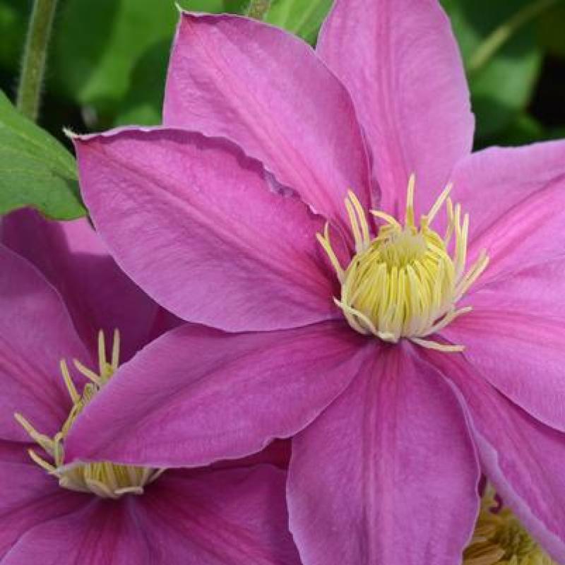 'Alaina' is one of the earliest of the large-flowered compact clematis and will produce huge, 5" pink flowers with yellow centers. This shorter growing Clematis is ideal for small areas and containers.